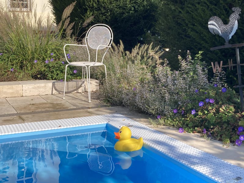 Blühende Stauden am Pool